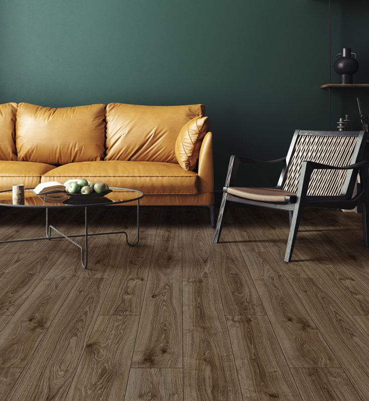 Толщина доски 8 мм и четырехсторонняя фаска V4 создают эффект натуральной деревянной доски, придавая полу дополнительную эстетичность. Коричневый цвет и односполосный рисунок добавят помещению теплоту и уют настоящего загородного дома. Покрытие обладает влагостойкостью aqua 24h, что позволяет использовать его в зонах с повышенной влажностью.