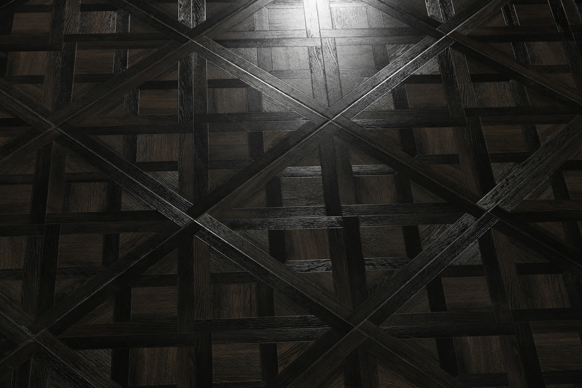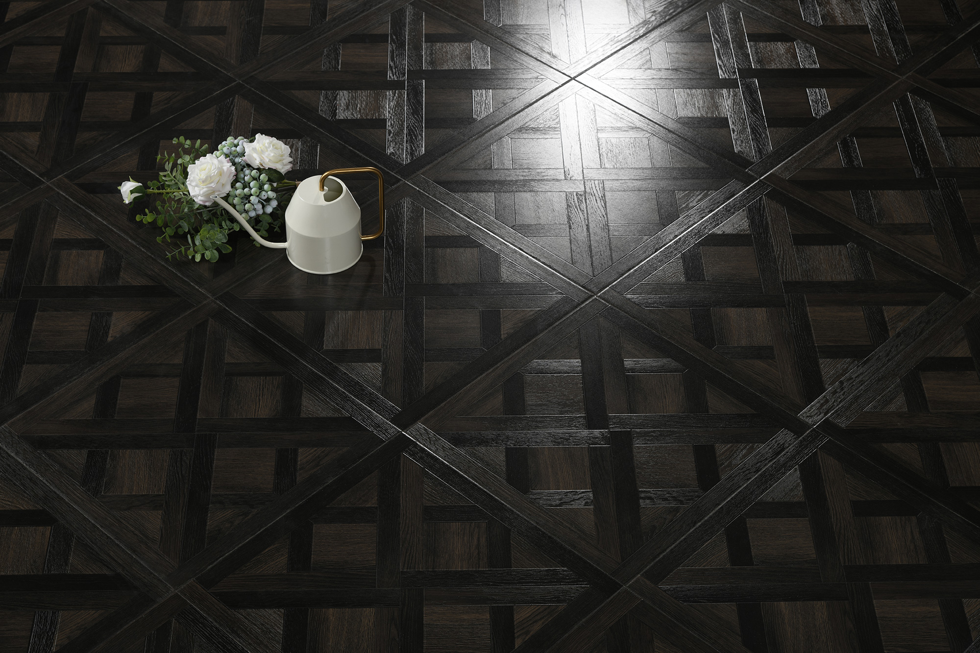 Ламинат Woodstyle Шанье — это элегантное и практичное решение для интерьера. Покрытие производится в Китае и выполнено в насыщенном черном цвете с художественным паркетным рисунком, который придаёт помещению глубину и изысканность.