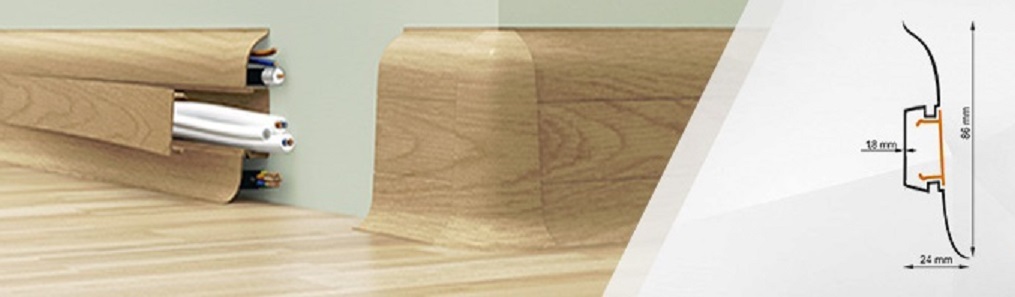 Производитель плинтуса T-Plast Описание плинтуса Высокий (86 мм) пластиковый плинтус с мягким краем и съёмной панелью, подпирается в цвет напольного покрытия нашими специалистами -