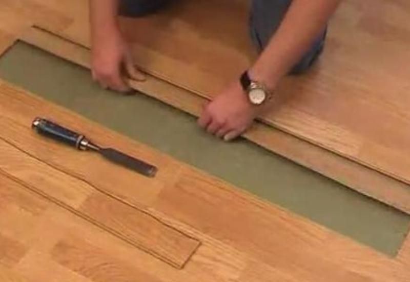 Далее можно разобрать поврежденный участок или заменить только один элемент. Во втором случае у нового ламеля надо отломить нижний элемент замкового соединения. Затем ламель вставляют на место старого, проклеивая стыки, устанавливают на него груз и выдерживают в таком положении сутки.